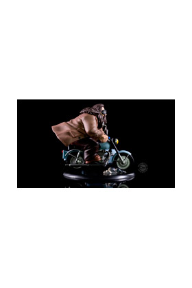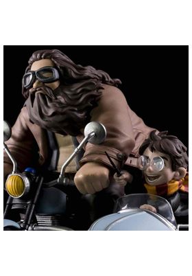 Quantum Mechanix, dentro de su linea de figuras Q-Fig, presenta la figura de Harry Potter y Rubeus Hagrid, de las películas basadas en las novelas de J.K. Rowling "Harry Potter". Presenta los dos amigos en la motocicleta mágica de Hagrid mientras corren hacia la aventura. El pelo y barba de Hagrid vuelan hacia atrás por el viento y Harry sonríe y blande su varita listo para la acción. Se trata de una figura de 15 cm de alto y 18 cm de largo y está compuesto por más de 50 piezas fundidas individualmente.Se trata de una edición limitada, numerada individualmente y viene con un certificado de autenticidad firmado.