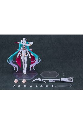 Good Smile Racing presenta, dentro de la colección Figma, la figura de Hatsune Miku Racing Miku Version. Mide 16 cm y está inspirada en una ilustración de Mogumo del proyecto "Hatsune Miku GT Project". Contiene placas faciales (cara sonriente, guiñando el ojo y sonriente con los ojos cerrados) y un micrófono en forma de escoba.