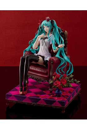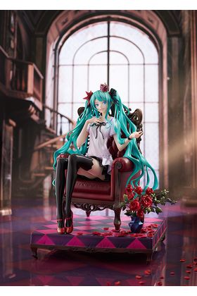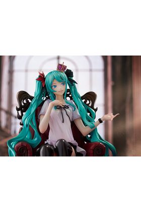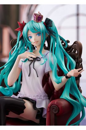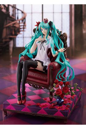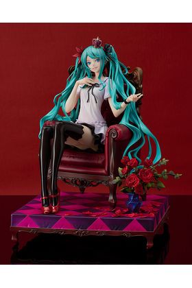 Good Smile Company presenta la figura de la cantante del Vocaloid "Hatsune Miku" en esta versión basada en la ilustración World Is Mine 2024 del artista Redjuice, donde Miku se presenta como una auténtica princesa moderna, con una pose delicada y un aire de sofisticación. La figura reproduce con fidelidad sus curvas, mostrando una ligera sonrisa con un toque enigmático que captura la esencia de su carismática personalidad. Mide aproximadamente 21,5 cm de altura a escala 1/7. Cuenta con un pedestal estable que simula madera tapizada.