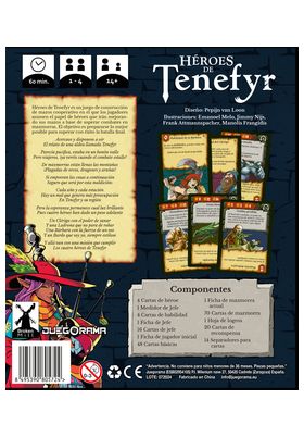 Contenido: 4 Cartas de héroe, 1 Medidor de Jefe, 4 Cartas de habilidad, 1 Ficha de Jefe, 16 Cartas de jefe, 1 Ficha de jugador inicial, 48 Cartas básicas, 1 Ficha de mazmorra actual, 70 Cartas de mazmorra, 1 Hoja de logros, 20 Cartas de recompensa y 14 Separadores para cartas."