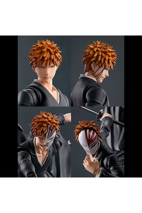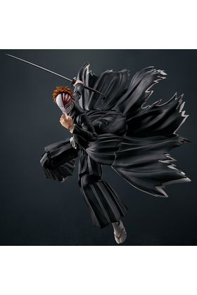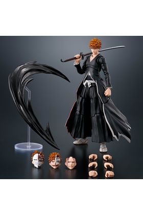 La colección S.H. Figuarts presenta la figura de Ichigo Kurosaki Getsugatensho. El protagonista del anime "Bleach" mide 15,5 cm e incluye 3x pares de manos intercambiables, 3x expresiones faciales (sangrando, enfadado con media máscara y máscara entera), 1x pieza de efecto Getsuga Tensho, su espada Tenchain Zangetsu y 1x pedestal. UNIDADES LIMITADAS