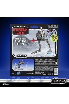 Hasbro añade a la colección Star Wars The Vintage Collection esta reproducción de un vehículo AT-RT del Remanente Imperial junto a su piloto, inspirados en la película "Star Wars: The Mandalorian & Grogu". El AT-RT cuenta con pistones móviles en las patas y articulaciones que permiten colocarlo en poses dinámicas, además de la habilidad de plegarse para tomar una posición de carga o de almacenamiento. Incluye 1x efecto de disparo removible y 1x base de soporte transparente. Por su parte, la figura del Imperial Remnant AT-RT Driver mide 9,5 cm., cuenta con múltiples puntos de articulación, incluye 1x pistola bláster y va dentro de un blíster con número de colección individual. Todo se presenta en una caja cerrada ilustrada. UNIDADES LIMITADAS.