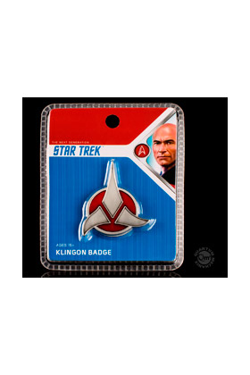 Quantum Mechanix, presenta este pin, basado en la serie de TV "Star Trek: The Next Generation". Se trata de un pin de la insignia Klingon, de una aleación de zinc con cierre magnético que utiliza imanes fuertes de campo corto que están incrustados en la propia insignia y dentro de una placa posterior brillante. Mide unos 4.5 cm.
