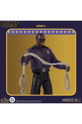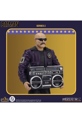 Mezco Toyz añade a su colección 5 Points la versión de dos figuras en una de los esbirros del Joker basada en su apariencia en la película "Batman" de 1989. Mide aproximadamente 9,5 cm y se presenta en formato blíster con estética retro. Incluye 2x cabezas intercambiables (para poder recrear 2 esbirros diferentes), 2x brazos intercambiables, 1x cuerda con gancho y 1x radiocasete. Ideal para exhibir con el resto de figuras de la serie 2 (se venden por separado).
