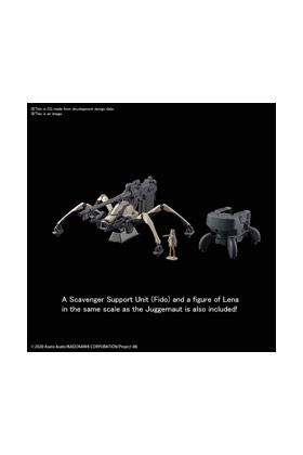 Bandai Hobby presenta dentro de la colección HG el model kit escala 1/48 para montar la figura del dron Juggernaut (General Purpose Type), de la serie de anime "86 Eighty-Six". Este model kit puede ensamblarse sin necesidad de pegamento e incluye la figura de Kaie y armamento.