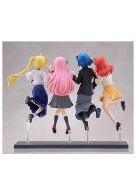 Aniplex presenta la figura de la escena del episodio 4 "Jumping Girls" del anime "Bocchi the Rock!". Se muestran a 4 personajes del anime, Hitori Gotoh, Nijika Ijichi, Ryo Yamada e Ikuyo Kita.