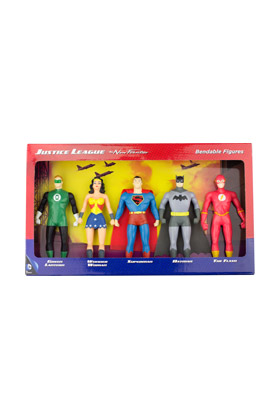 NJ Croce presenta este pack de 5 figuras flexibles hechas en PVC, basadas en los personajes Batman, Superman, Green Lantern, Wonder Woman y Flash de Justice League: The New Frontier del Universo DC.
