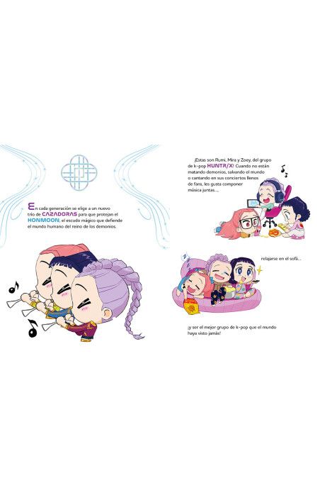 Rumi, Mira y Zoey son estrellas del pop de día... y cazadoras de noche! Acompáñalas y conoce a los Saja Boys, al tigre Derpy, al pájaro Sussie y a muchos otros queridos personajes del universo KPop Demon Hunters.