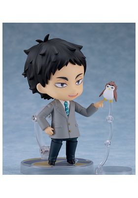 La figura Nendoroid de Keiji Akaashi viste con su característico uniforme del instituto Fukurodani del anime "Haikyu!!". Tiene una altura de 10 cm y contiene placas faciales (rostro compuesto y sonriendo), su compañero búho y accesorios (libro y base con diseño de voleibol). Puedes exponerla junto a la Nendoroid Kotaro versión uniforme escolar (se vende por separado).