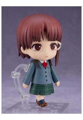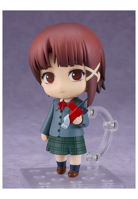 Good Smile Company presenta, dentro de la colección Nendoroid, la figura de Lain Iwakura. Mide 10 cm y está basada en su aparición en el anime "Serial Experiments Lain". Contiene placas faciales (cara inexpresiva, mirando de reojo y sonriente) y accesorios (un NAVI, una bolsa, un cartón del fondo de su habitación y una lámina transparente de ruido).