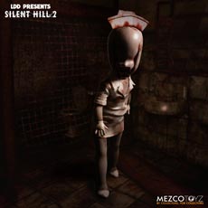 Mezco Toyz presenta la figura de Bubble Head Nurse, la enfermera que es una manifestación del subconsciente de James Sunderland, dentro de la colección "Living Dead Dolls" y basada en el videojuego de terror "Silent Hill 2". La figura de unos 25 cm cuenta con 5 puntos de articulación, viene con una escultura de cabeza completamente nueva que representa la apariencia grotesca del humanoide y está vestida con un uniforme de enfermera.