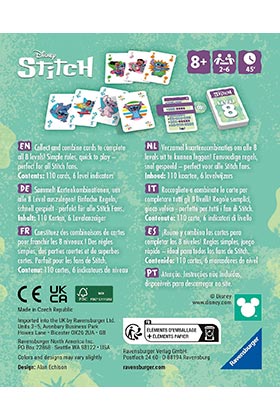 Level 8 Disney Stitch es un juego de mesa educativo y divertido para toda la familia. Con 110 cartas y 6 marcadores de nivel, el objetivo es reunir y combinar cartas para completar los 8 niveles del juego. Las reglas son simples, lo que permite una experiencia de juego rápida y accesible para jugadores a partir de 8 años. Perfecto para 2 a 6 jugadores, este juego de cartas es ideal para los fanáticos de Stitch y para aquellos que buscan mejorar su memoria mientras disfrutan de una partida divertida. Prepárate para una experiencia mágica con el entrañable Stitch!