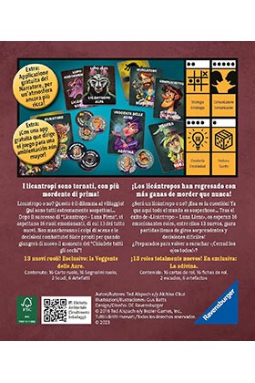 Nuevos papeles. Nuevos lobos. Nuevas elecciones. En este juego adopta un papel secreto y trabaja en equipo para descubrir a los hombres lobo... o, si eres un hombre lobo, evita que te descubran! Cada jugador tiene un papel con habilidades especiales: Lobo Alfa, Investigador Paranormal, Aprendiz de Vidente, Lobo Soñador y más.