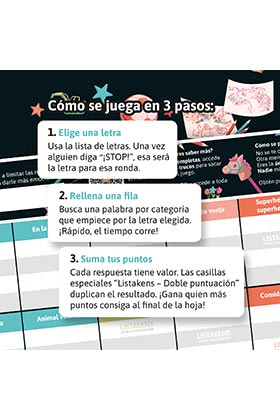 3. Suma tus puntos: Cada respuesta tiene valor. Las casillas especiales Listakens – Doble puntuación duplican el resultado.