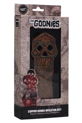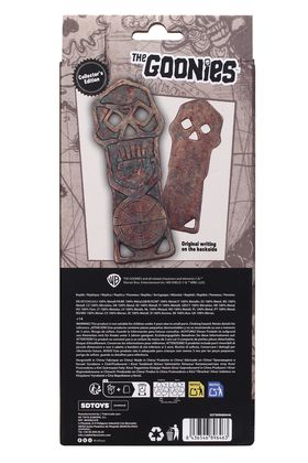 Revive una de las escenas más emblemáticas de The Goonies con esta réplica oficial de la Llave de Huesos, una pieza que captura el espíritu aventurero del clásico de los 80. Forjada en metal sólido, esta réplica reproduce con precisión los detalles y el acabado envejecido del accesorio original de la película. En su reverso lleva grabada la frase: De cobre los huesos, de piedra el trato, espuma al poniente , un guiño directo al enigma que guía a los Goonies en su búsqueda del tesoro de One-Eyed Willy. Con medidas de 17 x 1 x 7 cm y un peso de 450 g, ofrece una sensación realista y una presencia destacada al exhibirse. Su presentación en caja con decoración en barniz dorado resalta los símbolos y emblemas piratas del film, ideal para mostrar o conservar como pieza de colección. Un artículo con licencia oficial de The Goonies, perfecto para coleccionistas y fanáticos que saben que, cuando se trata de aventuras, nunca digas nunca .