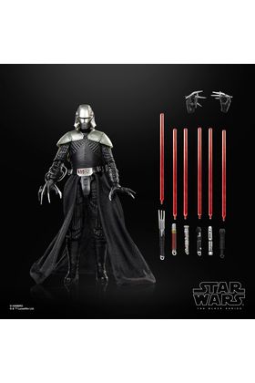 Hasbro incorpora a la línea The Black Series la figura deluxe de Lord Starkiller, inspirada en el videojuego "Star Wars: The Force Unleashed" ("Star Wars: El poder de la Fuerza" en España). Esta versión alternativa de Galen Marek presenta un diseño premium, múltiples puntos de articulación y falda con alambre interno para poses dinámicas. Incluye 5x sables de luz roja con efectos intercambiables y 2x manos alternativas. Mide 15 cm y se presenta en una caja ilustrada con ventana. UNIDADES LIMITADAS.