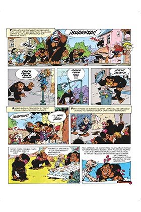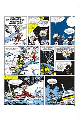 Este nuevo volumen del integral de Los Hombrecitos nos ofrece tres emocionantes historias largas. Asistiremos al asalto de las grutas de Eslapión 2 por parte de los hombres-mono, manipulados por el maquiavélico duque de la Maraña. Después de esta aventura, un conocido trío de viajeros temporales regresa a la Tierra para invitar a los Hombrecitos al planeta donde se han instalado. A su regreso, nuestros héroes atravesarán un "agujero blanco" que les conducirá a una peculiar versión de nuestro planeta. Además, disfrutaremos de una nueva historia corta y de los jugosos extras con los que conoceremos mejor los entresijos de esta serie.
