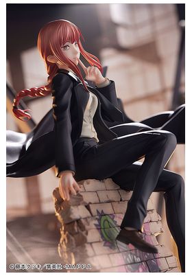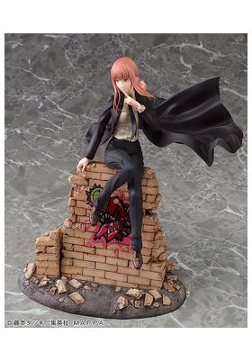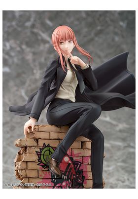 Phat! Company presenta dentro de su línea de productos la figura de la cazadora de demonios Makima de Chainsaw Man. La figura mide 28 centímetros a una escala de 1/7. Makima ha sido capturada en forma de figura sentada sobre las ruinas de un muro de ladrillos con una amable sonrisa en su rostro. Su misteriosa expresión, su uniforme impoluto, su abrigo ondeante, su pelo trenzado y el brillante grafiti de la pared han sido creados con increíble detalle.