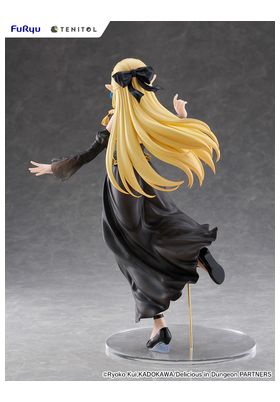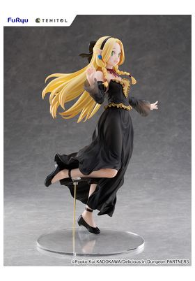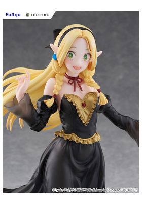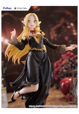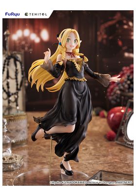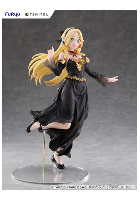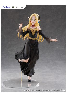 Furyu añade a su colección Tenitol Tall la figura de Marcille Donato con un vestido negro y detalles dorados, cuenta con un diseño original exclusivo para la marca. Está basada en su aparición en el anime "Delicious In Dungeon" y muestra a la elfo de una manera muy dinámica y lujosa gracias a los detalles del pelo y la ropa. La figura mide aproximadamente 28 cm y cuenta con una base circular transparente que le aporta estabilidad.