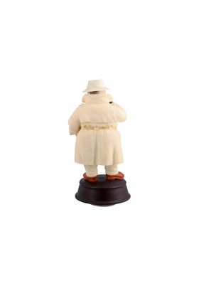 Benelic presenta, dentro de la colección Studio Ghibli, esta caja de música con la forma de Marco con gabardina. El protagonista de la película "Porco Rosso" mide 22 cm. de alto y está de pie sobre una base con el nombre de la película. La caja de música está fabricada en cerámica.
