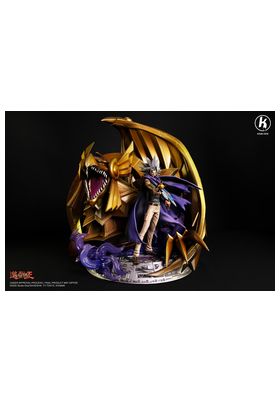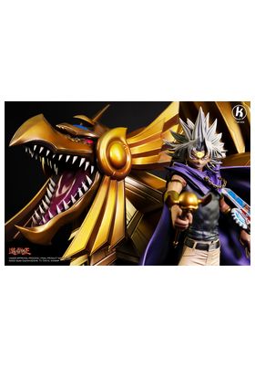 Llega la estatua de Marik junto con el Dragón Alado de Ra de Kitsune Statue. Tiene una altura de 46 cm a escala 1/7 y está basada en su aspecto en el anime "Yu-Gi-Oh!". Se muestra a Marik de pie delante del dragón invocado y cuenta con unos magníficos detalles, desde la cabeza del dragón hasta la carta de este en el Disco de Duelo. Está fabricada en polirresina y se presenta en una caja con ventana. Edición limitada a 300 unidades.