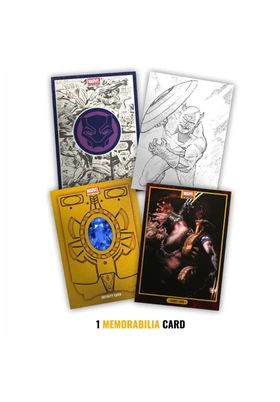 - 147 cards Memorabilia extremadamente raras y valiosas, divididas en 4 categorías: Infinity, Badge, Signed (autografiadas por artistas como Simone Bianchi, Gabriele Dell'Otto, Marco Checchetto y John Romita Jr.) y Sketch Cards auténticas, dibujadas y firmadas a mano. 1 card Memorabilia garantizada en cada caja!