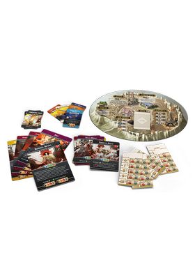 Contenido: 10 Miniaturas de enemigos, 1 libro de campana, 2 tableros de jefe, 4 tableros de doble capa, 1 tablero de pueblo, 5 dados verdes de defensa, 3 dados rojos de ataque, 32 fichas y 286 Cartas.