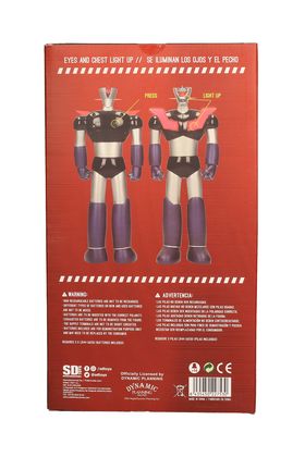 Amplía tu colección con la increíble figura de Mazinger Z de SD Toys, ahora con luz y una impresionante altura de 30 cm! Con ojos y pecho iluminados, esta figura de PVC es esencial para cualquier fan de la serie de animación. El regreso triunfal de Mazinger Z a SD Toys no podría ser más emocionante, y no querrás perderte la oportunidad de tener esta pieza destacada en tu colección. Ilumina tu pasión por Mazinger con esta figura asombrosa y haz que tu vitrina brille con la esencia de este icónico robot!