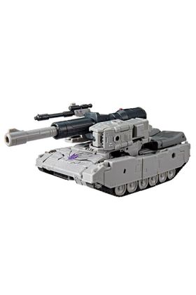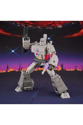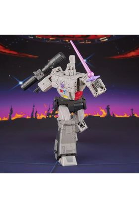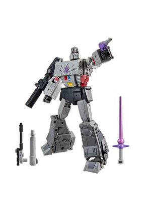Hasbro añade a su catálogo MTMTE de Transformers Studio Series la figura Leader Class de Megatron, inspirada en su personaje en "Transformers: The Movie" con motivo del 40º aniversario de la película animada. Mide aproximadamente 21,5 cm y se transforma de robot a tanque en 54 pasos. Incorpora un diseño con efectos de daños de batalla que evocan la icónica confrontación final contra Optimus Prime. Dispone de una amplia articulación que permite recrear poses dinámicas en ambos modos. Incluye: 1x cañón de fusión, 1x retro-cañón, 1x sable láser y 2x armas. UNIDADES LIMITADAS.