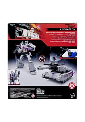 Hasbro presenta como parte de la colección Studio Series la figura Leader Class de Megatron basada en su aparición en "Transformers: The Movie". Esta figura articulada mide 21,5 cm y se convierte de robot a tanque en 54 pasos. Incluye accesorios que pueden fijarse en ambos modos: 1x cañón de fusión, 1x sable, 1x retro-cañón y 1x rifle láser. Su nivel de detalle y movilidad permite exhibirlo en poses dinámicas. Se presenta en una caja ilustrada con ventana. UNIDADES LIMITADAS.