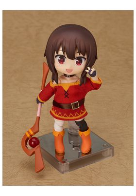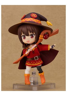 Good Smile Company presenta, dentro de la colección Nendoroid Doll, la figura de Megumin. Tiene una altura de 10 cm y está basada en el personaje del anime "Kono Subarashii Sekai Ni Syukufuku Wo! 3". Incluye 1x gorro, 1x bastón, 1x gargantilla, 1x capa, 1x vestido, 1x par de botas con imanes en las suelas, 1x ropa interior, manos intercambiables, 1x soporte articulado y 1x base magnética para las botas con imanes.