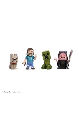Jada Toys presenta, dentro de la colección Metalfigs, este expositor de 12 figuras de metal de Minecraft. Tienen una altura de 7 cm. y están basadas en 4 personajes de la película "A Minecraft Movie". Cada expositor está formado por 3x Dennis, 3x Steve, 3x Creeper y 3x Malgohsa. Edad mínima recomendada 8 años.