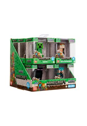 Jada Toys presenta, dentro de la colección Metalfigs, este expositor de 12 figuras de metal. Tienen una altura de 7 cm., se presentan en cajas con ventana y están basadas en 4 personajes icónicos del videojuego "Minecraft". Cada expositor está formado por 3x Alex con armadura de cuero, 3x Steve con armadura de diamante, 3x Creeper y 3x Enderman. Edad mínima recomendada 8 años.