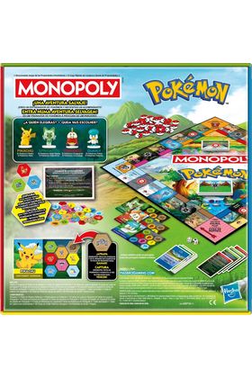 Hasbro presenta el juego de mesa Monopoly edición Pokémon. En esta versión del popular juego las propiedades son fantásticos lugares y los Poké Balls reemplazan el dinero. Los jugadores exploran lugares, atrapan distintos tipos de Pokémon salvajes para añadirlos a su hoja de registro y combaten contra Entrenadores rivales para recolectar Poké Balls. El primer Entrenador en completar la hoja de registro o el último Entrenador con Poké Balls ganará la partida. UNIDADES LIMITADAS.