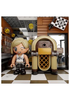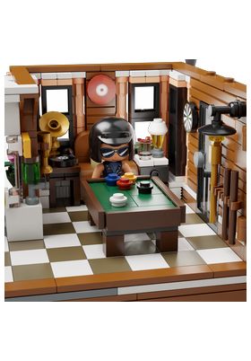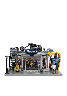 Pantasy presenta, dentro de la colección Retro Series, este set de construcción de Motorcycle Restaurant. Tiene unas medidas de 42 x 26 x 26 cm y está inspirado en un bar-restaurante motero mezclando la audacia americana con el romanticismo europeo. El set está formado por 2989 piezas y requiere de 5 horas aproximadamente para su montaje. El edificio consta de 4 plantas conectadas por escaleras en ambos lados. La planta principal contiene una tienda de motos: en la zona delantera encontramos el equipamiento y accesorios para motocicletas y en la parte trasera un servicio de reparación. La primera planta muestra el bar-restaurante con una zona interior y exterior. El segundo nivel consta de una zona de billar, un rincón musical y un llamativo rótulo en la pared exterior. En la azotea encontramos una terraza panorámica y una sala de juegos totalmente equipada. La puerta enrollable situada a la derecha del taller puede abrirse para sacar las motos aparcadas y la parte trasera de la primera y segunda planta puede abrirse y mostrar así los detalles del interior. El set está diseñado como un edificio de esquina, con puertas en ambos lados, lo que permite una integración perfecta con otros juntos de edificios modulares. Incluye un manual de instrucciones, 5 minifiguras y 4 motocicletas. Edad mínima recomendada 6 años.