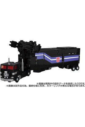 Hasbro presenta a MPG-16 Nucleon Quest Super Convoy. Esta figura Master Piece G fabricada por Takara Tomy mide 28 cm. y está inspirada en el Comandante Optimus Prime (conocido en Japón como Convoy) de color negro, diseñado para la exploración espacial profunda. La figura recrea fielmente los mecanismos del juguete original, con el Powermaster incluido que desbloquea la transformación del modo trailer al modo robot. El tráiler también se combina con Convoy para formar el poderoso Super Convoy. Además, el contenedor se transforma en una base móvil y puede montar un Cañón de Rayo de Partículas compatible con el Power Master. La figura Power Master incluida se transforma de forma humanoide a unidad de motor. También se puede colocar una figura de piloto dentro de la cabeza del remolque. Se incluyen 1x contenedor, 1x rifle superconductivo para Convoy, 1x Power Master, 2x cañón de rayo de partículas (para el Super Convoy), 1x figura de piloto, 1x cabeza de reemplazo, 2x piezas de hombro extras, 2x efectos de disparo, 1x adaptador y 1x manual de instrucciones (japonés). UNIDADES LIMITADAS