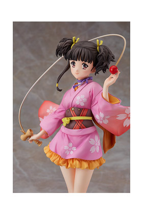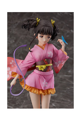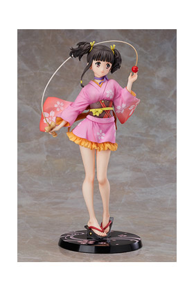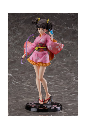 Good Smile Company presenta la figura a escala 1/7 de Mumei, protagonista de la serie anime "Kabaneri of the Iron Fortress", en su versión Yukata. Esta figura de aproximadamente unos 23.5 cm muestra a Mumei llevando su presioso yukata y sosteniendo en sus manos un kendama. Incluye un lazo púrpura extraíble y una base de exposición.