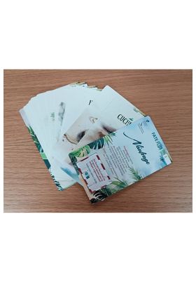 El sistema Fate Flip permite el uso de cartas con textos dobles, pues a veces voltearemos la carta sobre su lado largo, otras sobre su lado más corto.