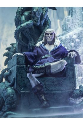 Frazetta Girls presenta el primer lanzamiento de la serie Elite Edition de Icon Collectibles con la figura de Nekron, el despiadado señor de Icepeak, inspirada en la película de fantasía épica de 1983 "Fire and Ice" ("Tygra: hielo y fuego" en España), dirigida por Ralph Bakshi y basada en el arte de Frank Frazetta. Esta figura a escala 1/12 mide aproximadamente 18 cm de altura y destaca por su alto nivel de detalle y articulación completa. Incluye un imponente trono completamente esculpido, diseñado como pieza central de exhibición, con escalones y motivos de bestia tallados. Se incluyen como accesorios 1x túnica de tela con partes articulables, 2x cabezas intercambiables, 8x manos adicionales, 1x peinado alternativo y 1x espada. Se presenta en una caja con ventana, ilustrada con arte de Frank Frazetta, marcando el debut de la línea Elite Edition.