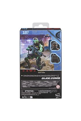 Hasbro presenta dentro de su línea G.I. Joe Classified Series la figura nº 187 correspondiente a Night-Viper, el soldado de operaciones nocturnas de Cobra. Esta figura a escala de 15 cm mantiene la esencia del diseño clásico con un aspecto renovado y realista. Incluye 1x casco cpm visor nocturno, 1x mochila, 2x cuchillos, 1x pistola y 1x rifle con mirilla. Sus múltiples puntos de articulación permiten recrear combates y escenas tácticas. Se presenta en una caja ilustrada con ventana. UNIDADES LIMITADAS.
