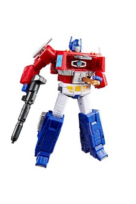 Hasbro presenta dentro de la colección MTMTE de Transformers Studio Series la figura Leader Class de Optimus Prime, inspirada en su personaje en Transformers: The Movie con motivo del 40º aniversario de la película animada. Mide aproximadamente 18 cm de altura y se transforma de robot a camión en 40 pasos. Presenta un acabado con efectos de daños de batalla que recrean su épico enfrentamiento final contra Megatron. Cuenta con múltiples puntos de articulación. Incluye: 1x Matriz de Liderazgo, 1x cañón y 1x estaca para recrear escenas icónicas. Se presenta en una caja con ventana ilustrada. UNIDADES LIMITADAS.