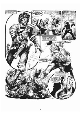 Tras su lanzamiento original en Starlord, Perro de Estroncio dio el salto a la revista 2000 AD tras la fusión de ambas cabeceras, incorporándose Alan Grant (Juez Anderson: Shamballa) al tándem creativo formado por los padres John Wagner y Carlos Ezquerra. Estas páginas, historia del cómic británico, incluyen aquellas primeras aventuras en 2000 AD, con este western de ciencia ficción repleto de viajes en el tiempo... y al mismísimo infierno.