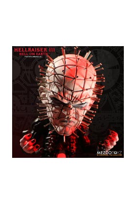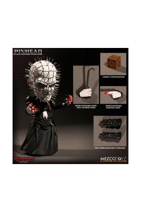 Mezco, dentro de su colección de figuras STYLIZED invoca la figura de Pinhead, el líder de los cenobitas de la película "Hellraiser". Esta figura mide unos 15 cm y ha sido esculpida y pintada con detalle. Incluye 2x brazos intercambiables, 1x cuchillo de tortura, 1x Caja de Lemarchand.
