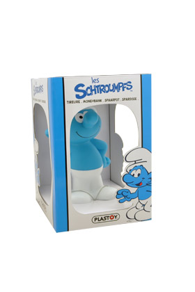 Plastoy presenta esta vistosa hucha en PVC dentro de su colección de figuras basadas en famosos personajes del mundo de los pitufos.
