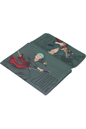 El cazador de piratas Roronoa Zoro protagoniza este diseño en tonos verdes. Un portamanga que refleja disciplina, fuerza y la lealtad del espadachín de los Sombrero de Paja.