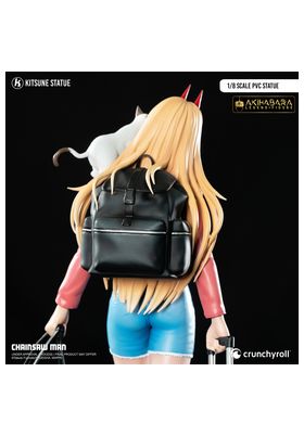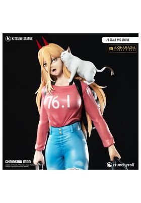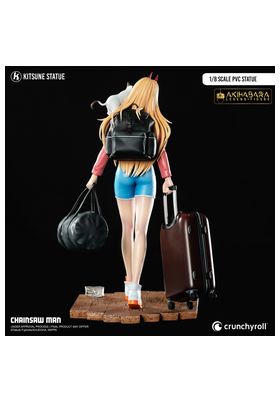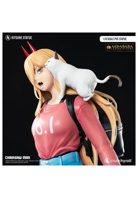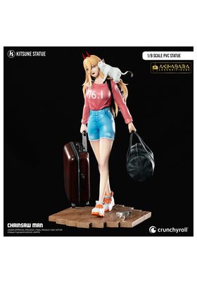 Kitsune presenta la estatua de Power. Tiene una altura aproximada de 21 cm a escala 1/8 y pertenece a la colección Akihabara Legend. Está basada en el personaje del anime "Chainsaw Man". Se muestra a la cazadora de demonios con su acompañante felino, Nyako, y maletas en mano. Cuenta con unos magníficos detalles, desde sus característicos cuernos de color rojo y ojos rojos amarillentos, hasta sus colmillos definidos. Está fabricada con PVC a partir de la escultura de Giacinto Platania.