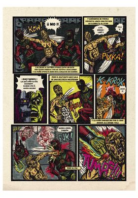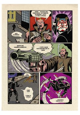 Vuelve la grapa comilfó de la mano y la mente de Víctor Dvnkel. Tebeos pulposos de continuidad, abigarrados de violencia, mundos ignotos, ninjoides, criminales, realidades paralelas, mazmorras, detectives, artes marciales extremas, desmembramientos y una improbable aspiración comercial. Una especie de mainstream fallido de las cloacas que haría las delicias de cualquier quinceañero, tenga la edad que tenga. Uno de esos tebeos que se podrían encuadrar en la edad oscura del cómic según los cuatro listos de turno que no saben divertirse. El detective gigante con cabeza de bebé está tras la pista de una serie de muertes misteriosas. En el submundo de los geómetras se está cociendo algo gordo. Mercenarios criminales de otra dimensión llegan hasta este plano de la existencia a resolver conflictos del suyo. Se va a liar. Proyecto secreto – EXOSQUELETO #1