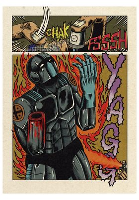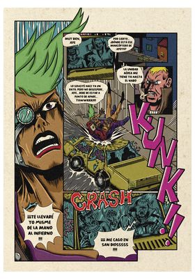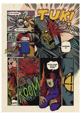Vuelve la grapa comilfó de la mano y la mente de Víctor Dvnkel. Tebeos pulposos de continuidad, abigarrados de violencia, mundos ignotos, ninjoides, criminales, realidades paralelas, mazmorras, detectives, artes marciales extremas, desmembramientos y una improbable aspiración comercial. Una especie de mainstream fallido de las cloacas que haría las delicias de cualquier quinceañero, tenga la edad que tenga. Uno de esos tebeos que se podrían encuadrar en la edad oscura del cómic según los cuatro listos de turno que no saben divertirse. El detective gigante con cabeza de bebé está tras la pista de una serie de muertes misteriosas. En el submundo de los geómetras se está cociendo algo gordo. Mercenarios criminales de otra dimensión llegan hasta este plano de la existencia a resolver conflictos del suyo. Se va a liar. Proyecto secreto – EXOSQUELETO #1