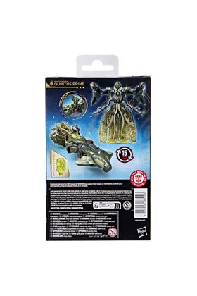 Hasbro lanza la figura articulada Deluxe Class de Quintus Prime, uno de los miembros de "The Thirteen" (o "Los Trece" en España). Forma parte de la línea "Transformers: Age of the Primes" y mide 14 cm. Puede convertirse de robot en nave espacial con forma de calamar en 15 pasos. Incluye 1x piedra ascua que se fija en el pecho del robot o cabe en la cabina de la nave. Con su diseño detallado y su articulación avanzada permite recrear diversas poses para exhibición. Se presenta en una caja con ventana con manual de instrucciones. UNIDADES LIMITADAS.