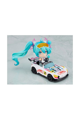 Good Smile Company presenta esta figura Nendoroid de Miku Racing, basada en "2021 Hatsune Miku GT Project". La figura ha sido ilustrada por En Morikura, y viene con dos expresiones faciales intercambiables. Incluye también una hoja de pedido, un bolígrafo y un automóvil Nendoroid para que ella viaje. Se trata de una figura de PVC que mide unos 10 cm de alto e incluye una base soporte para exposición.